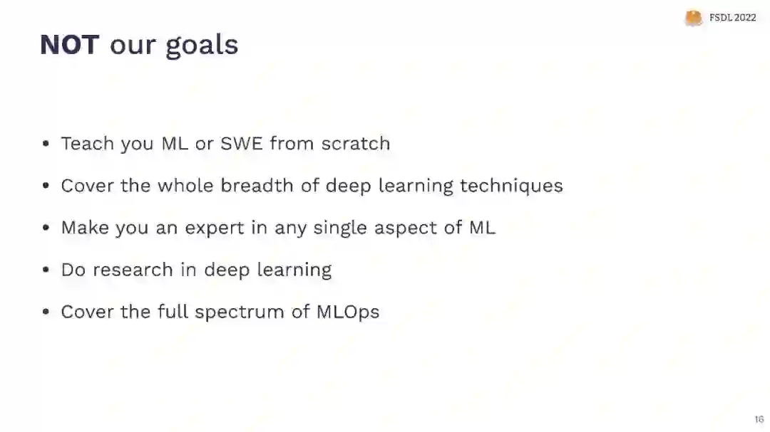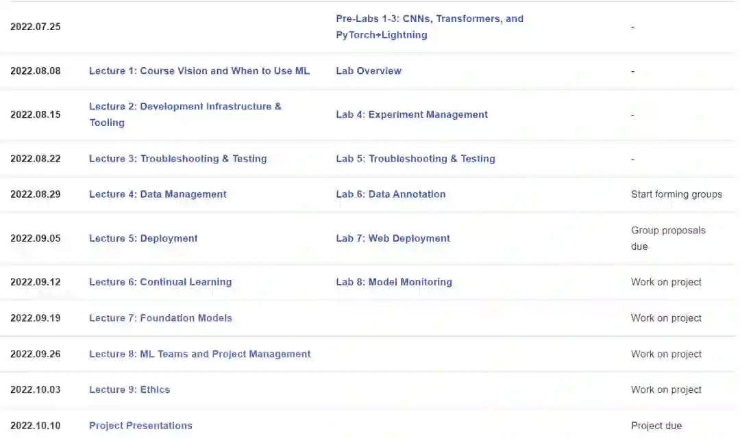 有很多很棒的课程来学习如何训练深度神经网络。但是,训练模型只是进行深度学习项目的一部分。本课程教授全栈生产深度学习: