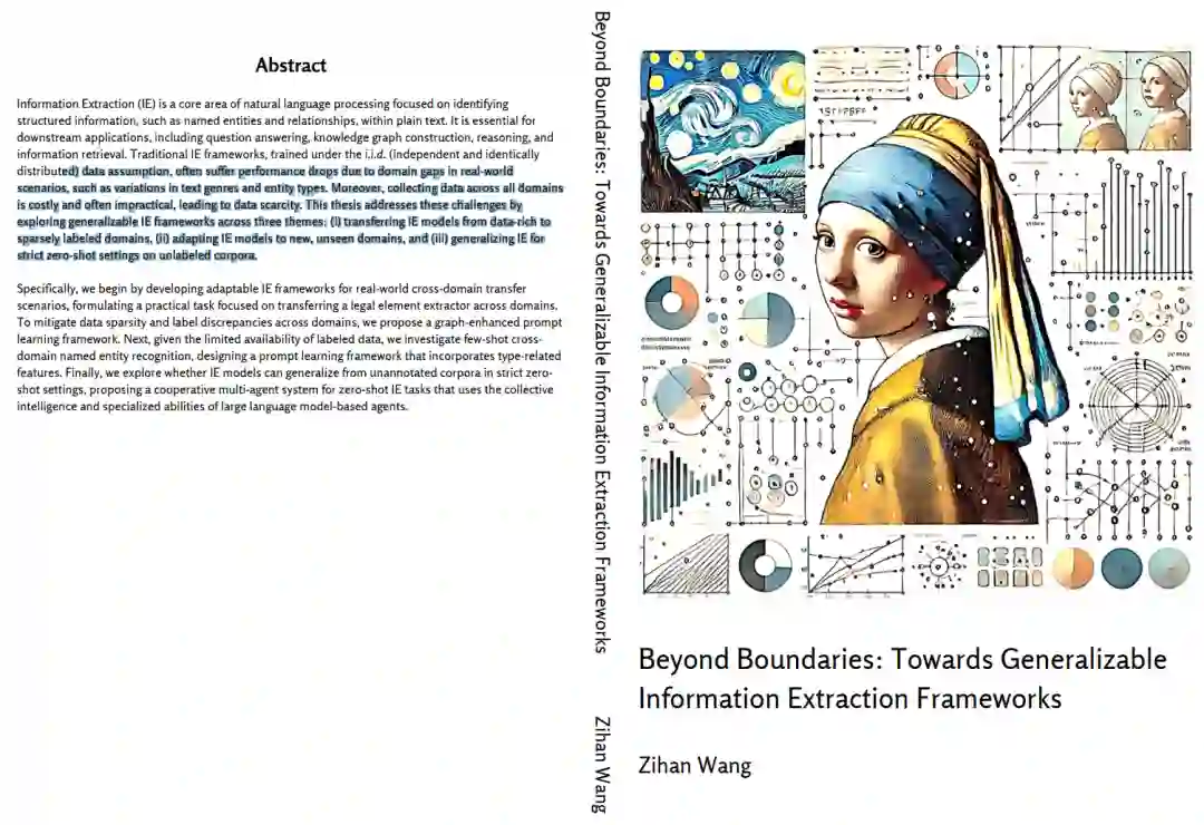 信息抽取(Information Extraction, IE)是自然语言处理的核心领域之一,专注于从普通文本中识别结构化信息,例如命名实体和关系。它在下游应用中至关重要,包括问答系统、知识图谱构建、推理以及信息检索。然而,传统的信息抽取框架通常是在独立同分布(i.i.d.)数据假设下进行训练,在现实场景中由于领域差异(例如文本类型和实体类别的变化)导致性能显著下降。此外,在所有领域收集数据既昂贵又不切实际,从而导致数据稀缺问题。本文旨在通过探索以下三个主题来解决这些挑战,从而构建可泛化的信息抽取框架:(i) 将信息抽取模型从数据丰富的领域迁移到标注稀疏的领域;(ii) 将信息抽取模型适配到新的、未见过的领域;(iii) 在完全零样本的情况下实现信息抽取模型的泛化。 具体而言,我们首先开发了适用于真实场景跨领域迁移的可适应信息抽取框架,并设计了一项实用任务,即在法律元素抽取中实现跨领域迁移。为了缓解领域间数据稀缺和标注不一致问题,我们提出了一种基于图增强的提示学习框架。接下来,针对标注数据有限的情况,我们研究了小样本跨领域命名实体识别,设计了一种融合类型相关特征的提示学习框架。最后,我们探讨了信息抽取模型能否在完全未标注的语料库中实现泛化,为此提出了一种协作式多代理系统,用于零样本信息抽取任务,通过基于大型语言模型的代理的集体智能和专业能力实现任务目标。 https://hdl.handle.net/11245.1/73c07f45-d2d5-4f36-ac85-f23a55159dcb