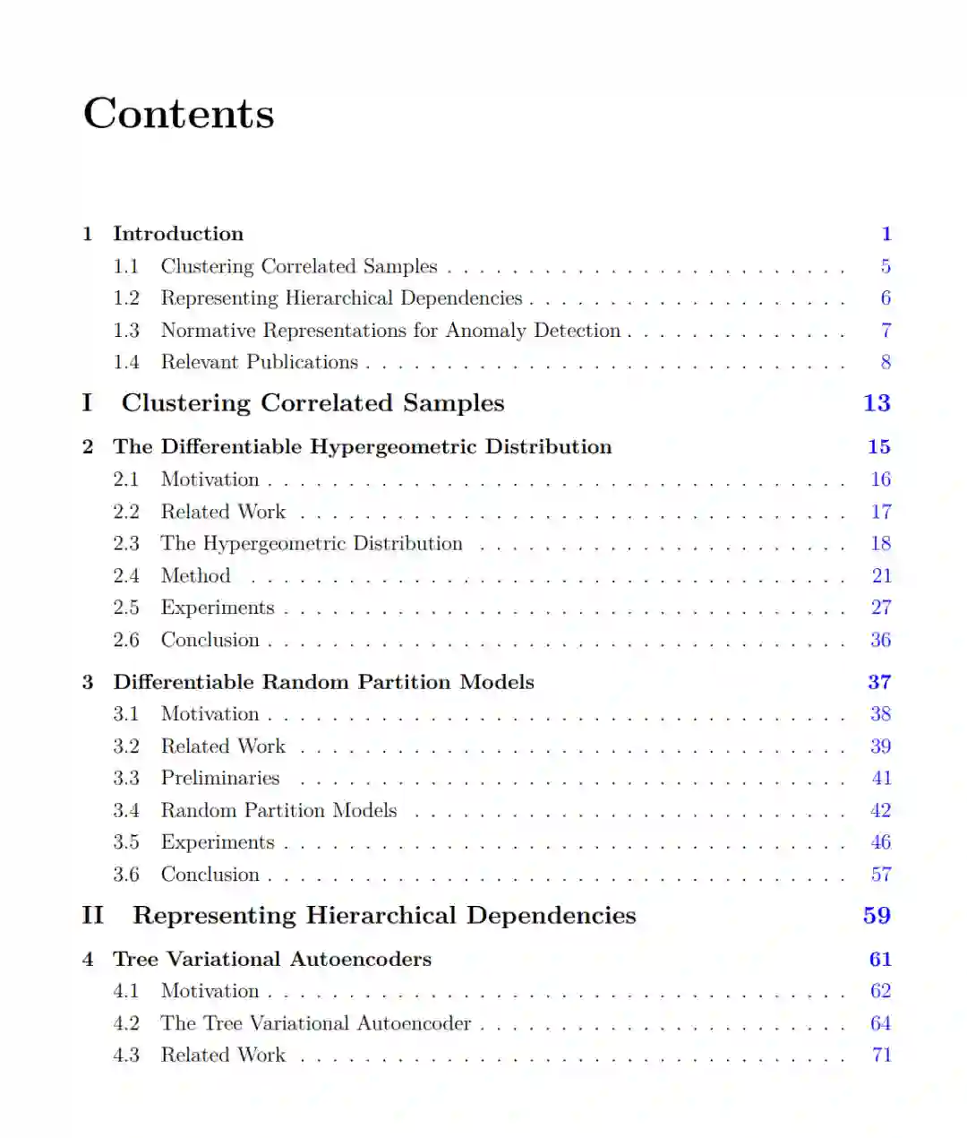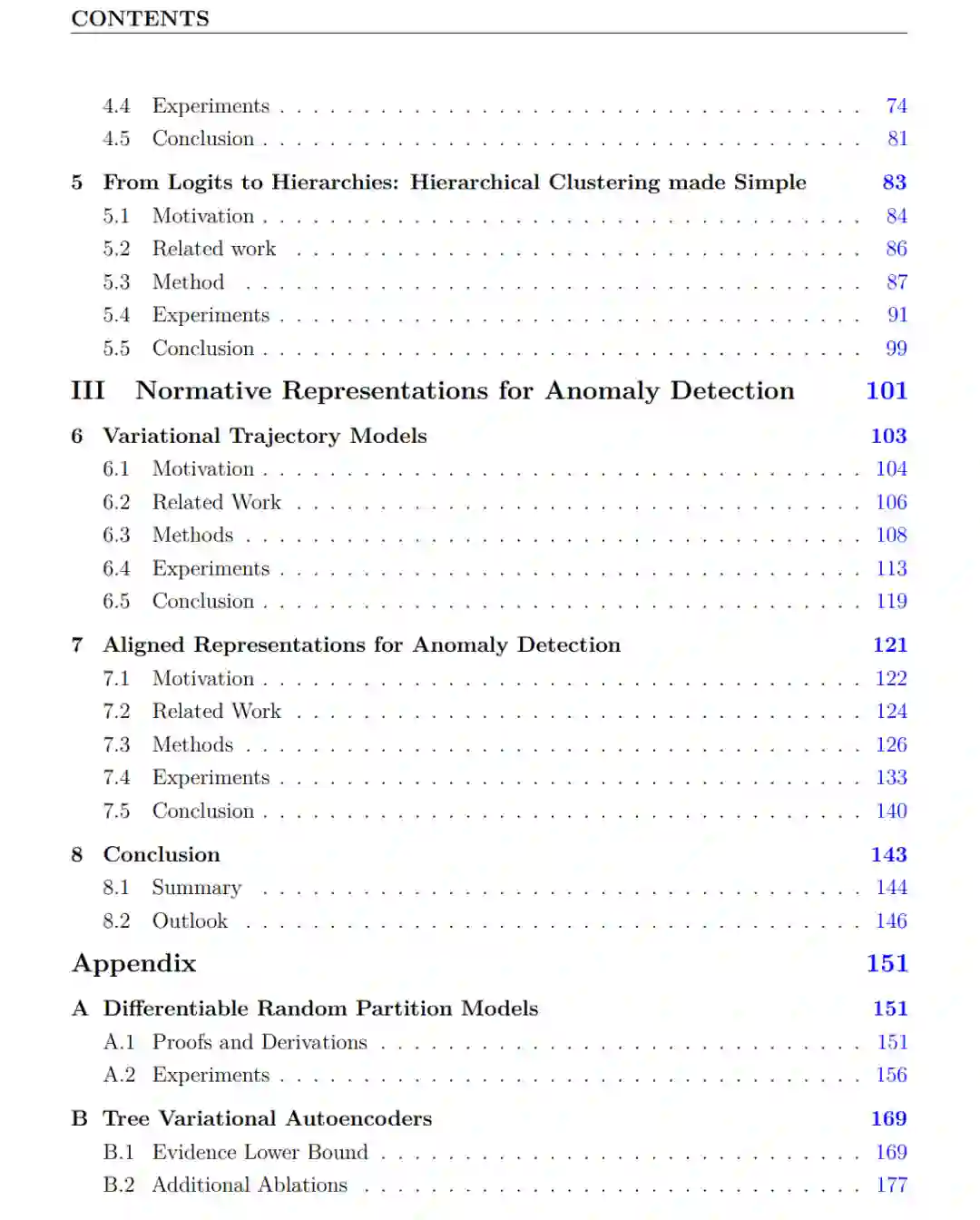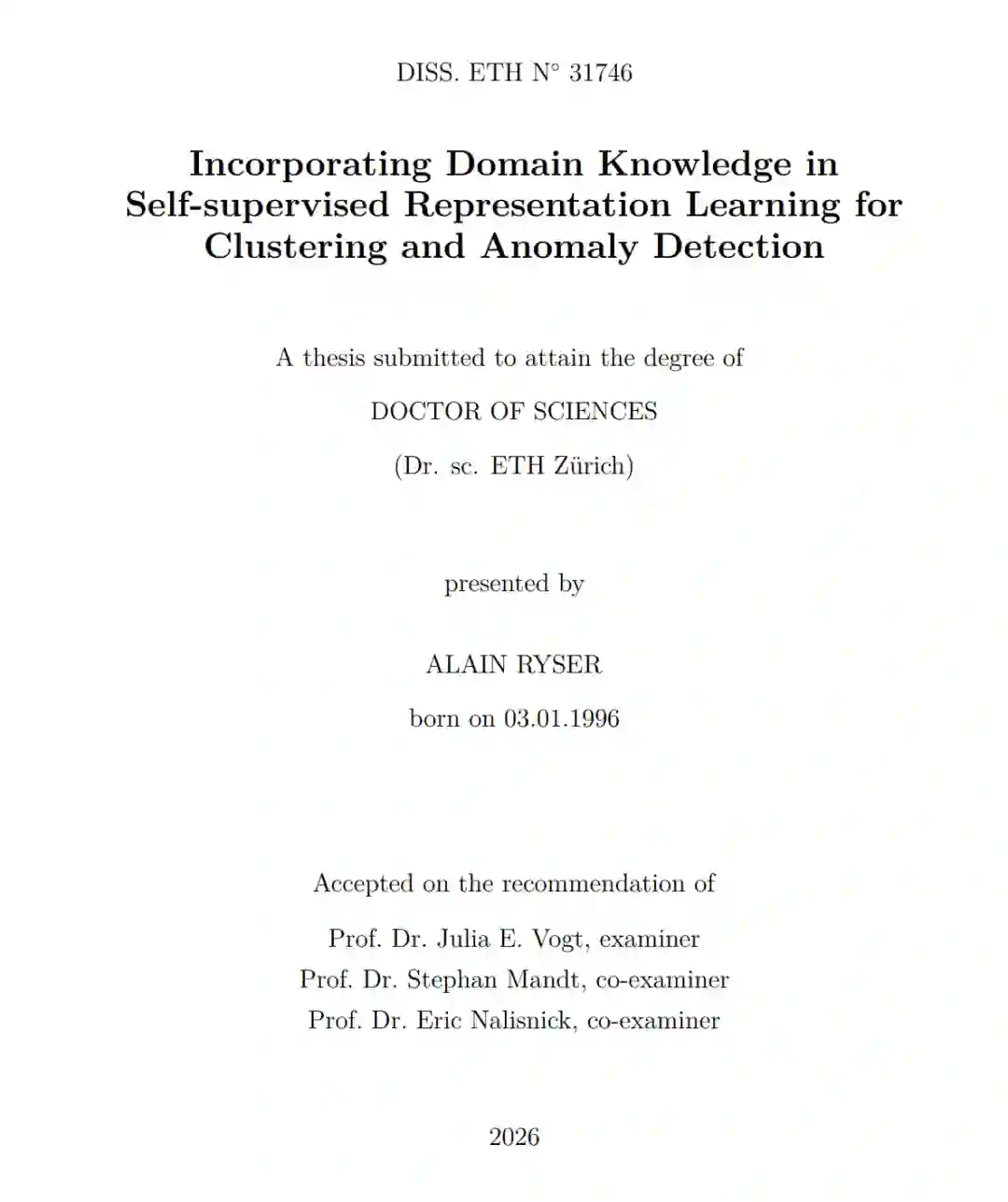 自监督表示学习能够从无标签数据中提取信息丰富的特征,构成了诸多现代机器学习方法的基础。然而,传统方法往往忽视了宝贵的专家与领域知识,而这些知识对于增强模型的可解释性、鲁棒性以及与现实世界语义的对齐至关重要。本论文探讨了如何系统性地将先验知识集成到自监督学习中,并将聚类与异常检测作为无监督学习的核心问题进行深入研究。 我们提出了一系列通过利用结构化先验和概率建模,将先验知识直接引入神经网络训练的方法。通过扩展变分自编码器(VAEs)以考虑样本间的依赖关系、层级关系及规范行为(normative behaviors),我们论证了自监督方法如何从通用的模式识别工具演变为语义理解机制。具体而言,我们展示了如何学习数据内部相关且层级化的聚类结构,以及如何编码关于正常状态(normality)的先验知识,以提升对稀有或特定领域异常项的检测能力。在这些设定下,集成先验知识能够持续产生更丰富的潜表示(latent representations),提高可解释性,并在特定领域展现出卓越的泛化性能。 综上所述,本论文的贡献表明,显式地将先验知识集成到机器学习中,所构建的模型不仅准确度更高,且能更好地捕获现实世界数据的语义。通过将数据驱动的学习与领域见解相对齐,我们获得的表示能够更深层次地揭示底层结构并支持知识发现,从而为迈向更具原则性、可解释性且应用感知的机器学习铺平道路。