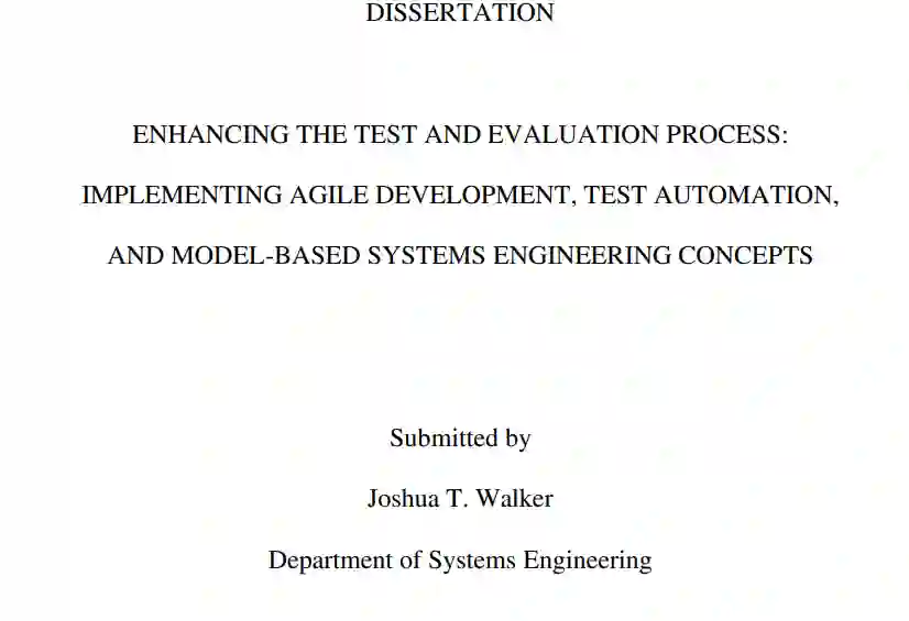 测试与评估(T&E)领域存在优化和创新的机会,自动测试框架和迭代测试方法的出现就是证明。基于模型的系统工程(MBSE)等相关概念的定向扩展和应用将带来更多机遇。本论文记录了在应用于实际项目时加强测试与评估领域的三种方法的开发和实施情况。首先,系统的开发方法从瀑布式(Waterfall)过渡到了敏捷式(Agile),从而在创建新功能时提供了一种反应更快的方法。其次,开发了测试自动化框架(TAF),实现了测试程序的自动执行。第三,使用系统建模语言(SysML)创建了一种测试文档方法,采用了 MBSE 的概念,使测试程序的规划和分析标准化。