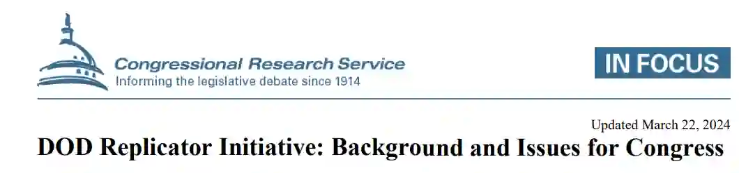 2023年8月28日发布的 "复制者"(Replicator)是美国国防部(DOD)的一项计划,由国防部国防创新单元(DIU)领导,旨在到2025年8月投入使用数千套无人系统。复制者计划的第一条主线("复制者 1")是部署全域可隐蔽自主系统(ADA2)。可隐身系统是一种成本相对较低的系统,美国国防部可承受较大程度的系统损失风险。美国国防部官员表示,未来的工作重点可能会放在其他类型的无人系统上。国会面临的一个关键问题是,是否批准、否决或修改国防部对 "复制者 "的拨款申请,以及国会是否掌握有关 "复制者 "的足够信息,以评估其优点并对该计划进行有效监督。