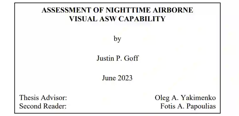 美国海军(USN)和美国海岸警卫队(USCG)正在转向应用和使用无人系统,通过协调一系列作战多样性,为其视角任务集提供价值。这项研究工作旨在评估在使用标准成像传感器的同时使用市场上可买到的小型无人机系统(sUAS)的可行性,以提高海上舰队对水下威胁和夜间反潜战的态势感知能力。研究小组开展了三项工作:前两项工作是非机密的,涉及鲸鱼探测;第三项工作是机密的,处理真实的实地数据,并作为补充资料列入。这两项非保密工作是在有人驾驶飞机和无人驾驶飞机上安装市场上可买到的成像传感器,目的是在夜间利用生物发光探测鲸鱼。比较了固定翼和旋转式 sUAS 作为飞行平台与红绿蓝 (RGB) 和多光谱成像传感器。发现并克服了许多挑战,包括减少来自环境和飞机的光污染、批准无人驾驶航空飞行器在夜间超出视线范围运行,以及图像拉长的复杂性。最终确定,配备 MicaSense RedEdge-P 的旋转式无人机系统是在夜间从移动平台发射时捕捉次表层生物发光传输的最佳平台。