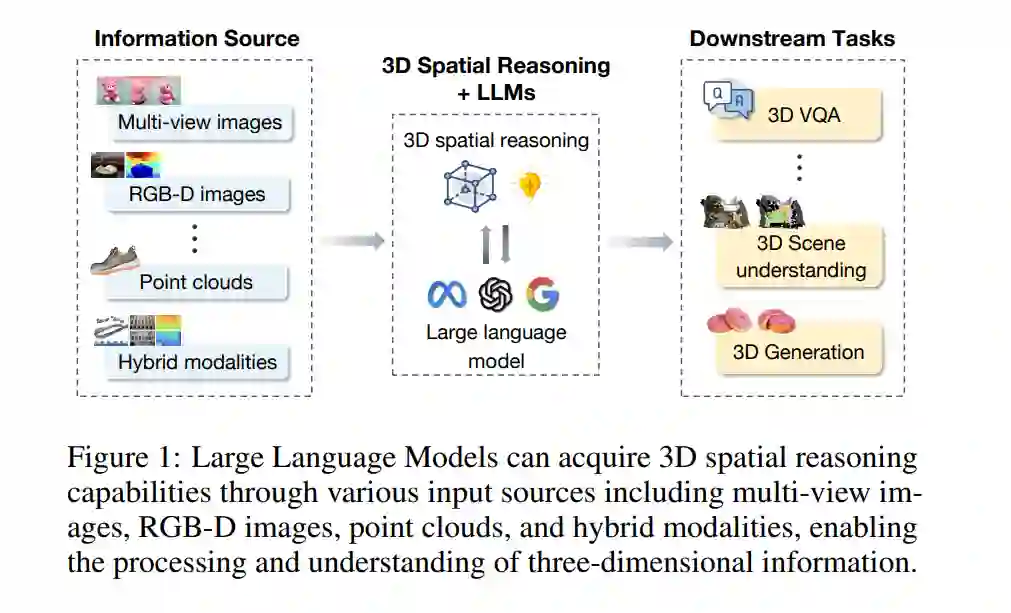 大型语言模型(LLMs) 已从早期的基础神经网络演进为先进的 Transformer 架构模型,如 BERT [Kenton 和 Toutanova, 2019] 与 GPT [Radford, 2018],最初凭借海量文本数据的训练在语言任务上取得了卓越表现。然而,近年来的进展已将这些模型的能力扩展至纯语言处理之外,使其具备多模态理解能力(在本文中,LLMs 特指集成了多模态功能的语言模型)。其在捕捉复杂模式与关系方面的能力 [Chen 等, 2024a],正逐步展现出在空间推理任务中的潜力 [Ma 等, 2024b]。 将这些增强型模型应用于理解三维对象关系、空间导航等挑战,为推进机器人、计算机视觉与增强现实等领域带来了全新机遇 [Gao 等, 2024]。与此同时,三维数据与三维建模技术也取得了显著发展 [Ma 等, 2024c],在虚拟/增强现实、机器人、自动驾驶、游戏、医学影像等领域中得到了广泛应用。与传统二维图像相比,三维数据提供了更丰富的对象与环境视角,能够捕捉关键的空间关系与几何信息。这些信息对于场景重建、物体操作、自动导航等任务至关重要,而仅靠文本描述或二维表示往往难以传达必要的深度与空间语境。 LLMs赋能空间理解。将这两个领域——LLMs 所擅长的语言理解能力与三维数据所提供的空间真实感——相结合,有望实现具备上下文感知能力的高效系统。从语言角度看,现实世界中的描述常常涉及物体的空间排列、朝向或操作方式,然而,仅靠文本往往难以准确传达大小、形状或相对位置等信息,除非模型具备稳健的空间或视觉理解能力。因此,当前出现了越来越多的研究致力于赋予 LLMs “三维能力”,使其能够根据自然语言提示进行三维理解、推理,甚至生成三维表示。这种集成方法为多个领域带来令人期待的应用前景,例如:能够基于三维上下文更好地理解语言指令的机器人、能够通过文本快速原型化三维空间布局的建筑师、能够根据叙事描述生成沉浸式环境的游戏设计师,以及更多尚未被想象到的创意应用。 研究动机。尽管 LLMs 已被越来越多地应用于与三维相关的任务,并且 Ma 等 [2024b] 已对该领域进行了系统性综述,但该领域的快速发展在近期产生了大量新成果,亟需一份能够反映最新进展的综述,以捕捉最新的技术突破。将三维能力集成进 LLMs 仍面临诸多挑战,包括: 1. 高质量三维数据集的稀缺,远不如文本语料丰富; 1. 文本数据的序列性与三维空间数据的连续性之间的根本差异,这对模型架构提出了新的适配需求; 1. 处理大规模三维数据的计算资源开销巨大。