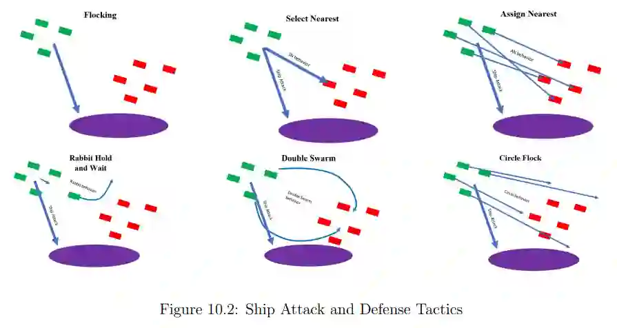MIDN 1/C Abramoff(2019级)研究了无人机蜂群战术,并在Python中模拟了微型蜂群对蜂群战斗。他创建了一个二维空间,用一个点代表蜂群中的每个特工。每个智能体可以向前射击(在它移动和面对的方向)。被另一个智能体的 "子弹 "击中的智能体被假定为死亡,并从模拟中删除。阿布拉莫夫创建了蜂群,并编写了一个蜂群算法,以便特工能够作为一个整体蜂拥飞行,而不会发生碰撞、分离或破坏蜂群。一旦智能体真实地成群,阿布拉莫夫探索了各种无人机群战术,如选择-最近和分配-最近,并测试了它们对敌人群的有效性。选择-最近 "允许每个特工瞄准离自己最近的敌人。当蜂群向对方移动时,智能体将根据每个时间点上哪个敌人的无人机最近而改变其目标。分配最近的任务给每个智能体一个任务,以消除一个不同的敌方无人机。任务是根据哪个敌方无人机离友军蜂群最近来决定的,并在每一帧重新更新。阿布拉莫夫对两个蜂群的模拟战斗进行了实验,以测试哪种蜂群战术最有效。他还尝试使用反蜂群战术进行战斗,如在蜂群前面派出一个 "兔子 "特工,并分成子蜂群。总之,阿布拉莫夫发现,在他的实验中,"最近分配 "是最有效的,一些反蜂群战术也很成功。这些结果不是结论性的,但显示了在发展蜂群和反蜂群军事战术方面的进展。本研究提案将在MIDN 1/C Abramoff的工作基础上进行扩展,创建一个3-D环境模拟,并改进智能体能力,以代表一个现实的无人机群战。这个研究提案的环境将有一个更大的战斗空间,智能体可以采取更多的行动,包括改变高度、武器瞄准和蜂群间的通信/团队合作。