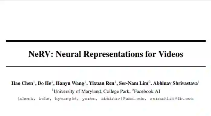 我们提出了一种新的视频神经表示(NeRV),它在神经网络中对视频进行编码。与传统的将视频表示为帧序列不同,我们将视频表示为以帧索引为输入的神经网络。给定帧索引,NeRV输出相应的RGB图像。NeRV中的视频编码只是简单地将神经网络拟合到视频帧上,解码过程是一个简单的前馈操作。作为一种图像隐式表示,NeRV输出整幅图像,比像素隐式表示效率高,编码速度提高了25倍至70倍,解码速度提高了38倍至132倍,同时获得了更好的视频质量。有了这样的表示,我们可以将视频视为神经网络,从而简化了几个与视频相关的任务。例如,传统的视频压缩方法受到为任务专门设计的长而复杂的流水线的限制。相比之下,使用NeRV,我们可以使用任何神经网络压缩方法作为视频压缩的代理,并达到与传统的基于帧的视频压缩方法(H.264, HEVC等)相当的性能。除了压缩外,我们还展示了NeRV在视频去噪中的推广作用。源代码和预先训练的模型可以在https://github.com/haochen-rye/NeRV.git上找到。