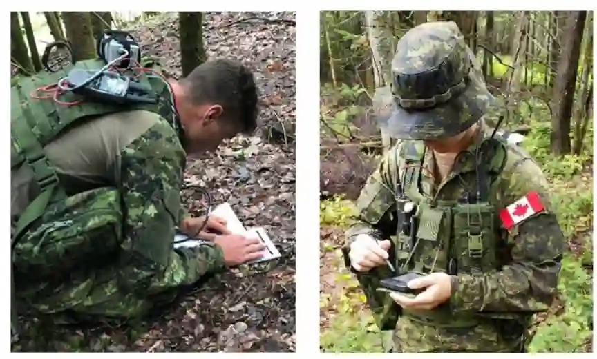 研究人员从瓦尔卡蒂尔加拿大部队基地(CFB)的皇家 22e Régiment(R22eR)第三营招募了 17 名士兵。每位参与者都执行了四项任务: 规划、简单导航、跟随和复杂导航。规划任务要求学员绘制网格参考点、规划导航路线并分发计划。简单导航任务要求士兵规划和导航一条简单路线,并保持对任务关键位置的感知。接下来的任务只要求学员跟随实验人员从一个地点到另一个地点。最后,复杂导航任务要求参与者围绕指定雷区制定最直接的路线计划,然后在路线计划的所有路段进行导航。在复杂导航过程中,士兵们还必须发现固定的步兵目标(SIT)。任务结束后,士兵们填写了一些调查问卷,并参加了一个焦点小组,其目的是评估对所使用系统的态度和意见。