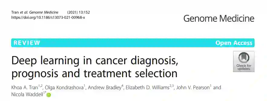 深度学习是人工智能的一个分支学科,它使用一种名为人工神经网络的机器学习技术,从大型数据集中提取模式并做出预测。深度学习在医疗保健领域的日益普及,以及高度特征的癌症数据集的可用性,加速了深度学习在复杂癌症生物学分析中的应用研究。虽然早期的结果很有希望,但这是一个快速发展的领域,癌症生物学和深度学习领域都出现了新知识。在这篇综述中,我们概述了新兴的深度学习技术以及它们是如何应用于肿瘤学的。我们专注于组学数据类型的深度学习应用,包括基因组、甲基化和转录组数据,以及基于组织病理学的基因组推断,并提供了如何集成不同数据类型以开发决策支持工具的观点。我们提供了具体的例子,如何深度学习可以应用于癌症诊断,预后和治疗管理。我们还评估了深度学习在精确肿瘤学中的应用目前的局限性和挑战,包括缺乏表型丰富的数据和需要更多解释的深度学习模型。最后,我们讨论了如何克服目前的障碍,从而使深度学习在未来的临床应用成为可能。