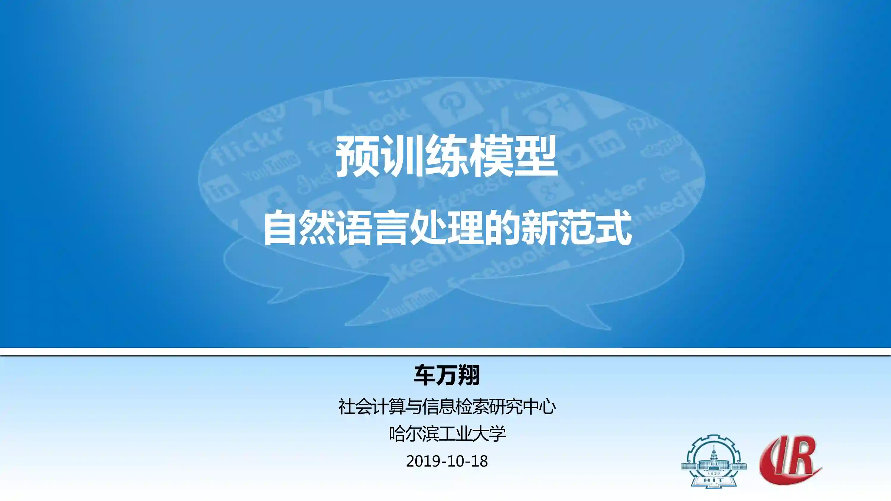 报告主题: 预训练模型--自然语言处理的新范式