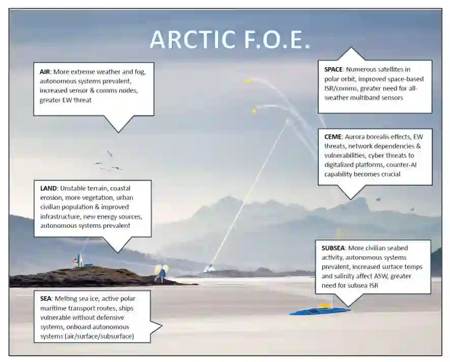 由于气候变化的影响,北极地区正在迅速演变。其中最显著的变化是陆地和海上冰层的消退,这使得交通路线和资源有了更大的通路。分析家和观察家们积极讨论了这些发展对地区和全球安全的潜在影响。当各国将北极视为军事行动的潜在区域时,不断变化的气候和该地区新人类活动的前景只是应考虑的几个相关因素。未来 30 年北极作战环境的特点是什么?