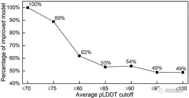 图6. AlphaFold2全长模型的平均pLDDT与SADA重组模型的TM-score提升率的关系
