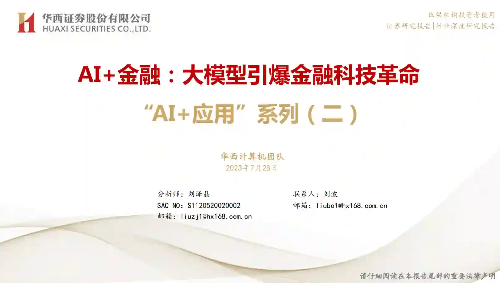 我们认为,金融行业数据丰富且数据质量高,具备大模型训练的良好基础。同时,金融行业细分领域众多,且大量产品最终服务于C端用户,大模型应用场景丰富。随着大模型与金融业务的融合,创新应用将层出不穷。