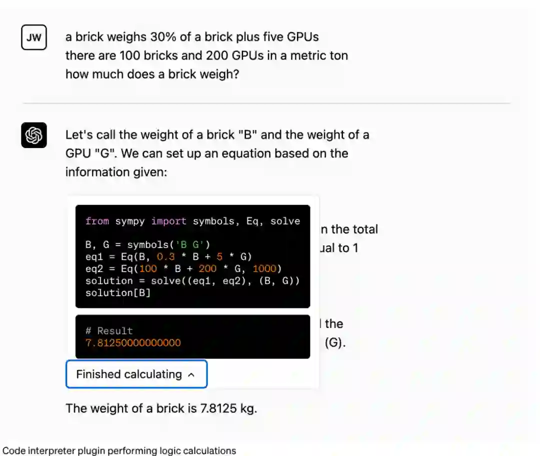 OpenAI 为 ChatGPT 背后的模型提供了一个在沙盒、防火墙执行环境中工作的 Python 解释器,以及一些临时磁盘空间。由解释器插件运行的代码在一个持久会话中进行评估,该会话在聊天对话期间(具有上限超时)一直处于活动状态,并且后续调用可以相互构建。目前该功能支持将文件上传到当前对话工作区并下载工作结果。