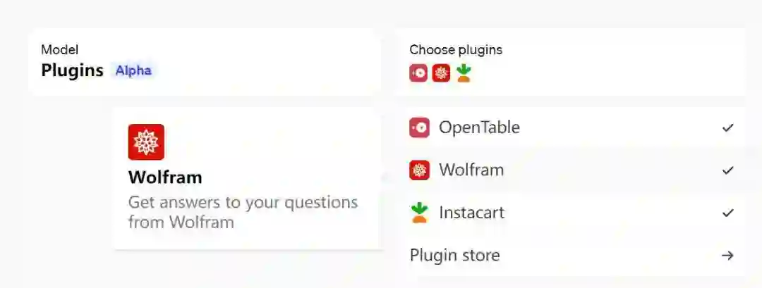 在 chat.openai.com 上开始对话时,用户可以选择他们想要启用的第三方插件。有关已启用插件的文档作为对话上下文的一部分显示给语言模型,使模型能够根据需要调用适当的插件 API 来实现用户意图。目前,插件是为调用后端 API 而设计的,OpenAI 还正在探索也可以调用客户端 API 的插件。