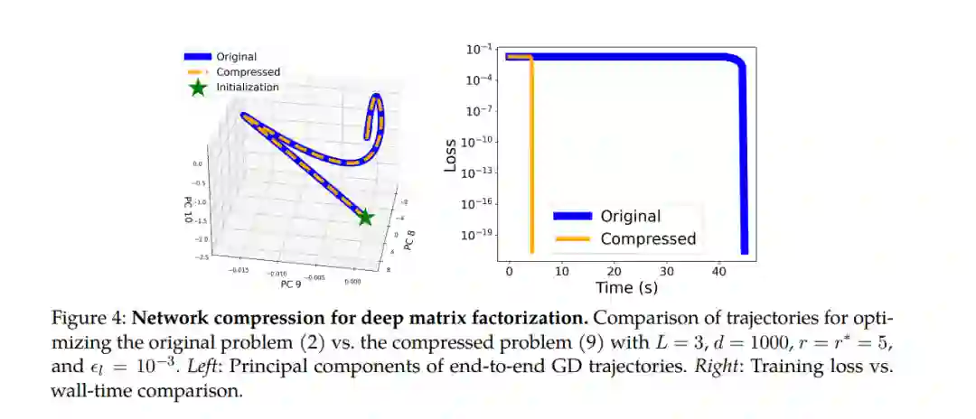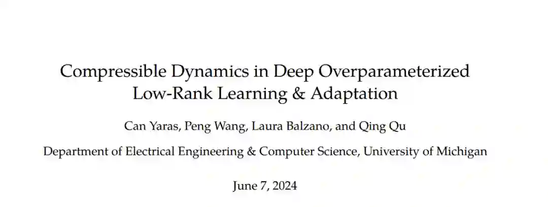 尽管机器学习模型中的过参数化在优化和泛化方面带来了极大的好处,但随着模型规模的增长,也导致了计算需求的增加。在这项工作中,我们展示了通过利用数据和模型参数内在的低维结构和可压缩动力学,我们可以在不增加计算负担的情况下享受过参数化的好处。在实践中,我们证明了这种方法在深度低秩矩阵补全以及微调语言模型方面的有效性。我们的方法基于深度过参数化低秩矩阵恢复的理论发现,我们证明了每个权重矩阵的学习动力学被限制在一个不变的低维子空间中。因此,我们可以构建和训练紧凑的高度压缩的分解,同时具有与其过参数化对应物相同的优势。在深度矩阵补全的背景下,我们的技术在保持过参数化优势的同时,大大提高了训练效率。对于语言模型的微调,我们提出了一种称为“Deep LoRA”的方法,这种方法改进了现有的低秩适应(LoRA)技术,减少了过拟合并简化了超参数设置,同时保持了相当的效率。我们在自然语言任务中验证了Deep LoRA的有效性,特别是在有限数据下进行微调时。