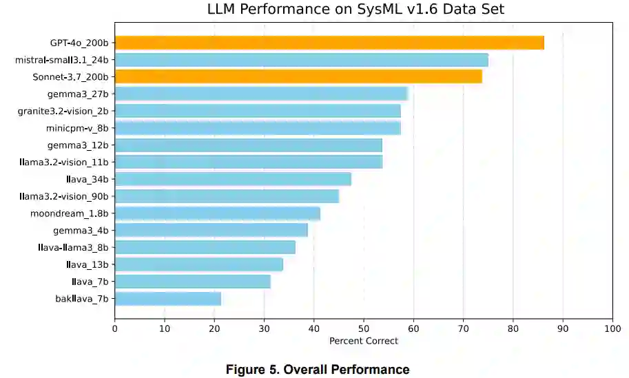 大型语言模型(LLMs)的持续发展为系统工程领域(尤其是视觉问答(VQA)方向)开辟了新机遇。多模态LLMs能够同时处理文本与图形输入,使其可结合基于模型的系统工程(MBSE)模型的图形元素与配套文本描述进行综合解析。本文探究多模态LLMs对系统建模语言(SysML)v1块定义图(BDDs)的理解与解释能力。BDDs是以可视化形式精确描述系统结构元素、属性、关系与多重性的图表。我们采用精选的SysML BDD数据集及配套多项选择题集,对专有与开源多模态LLMs进行评估——该数据集设计用于测试LLMs在布鲁姆分类法前两层级(记忆与理解)的表现,同时分析模型规模对准确率的影响。研究结果揭示了当前哪些LLMs能够原生解析SysML BDD语法,为未来利用AI代理增强系统建模流程的研究提供方向。