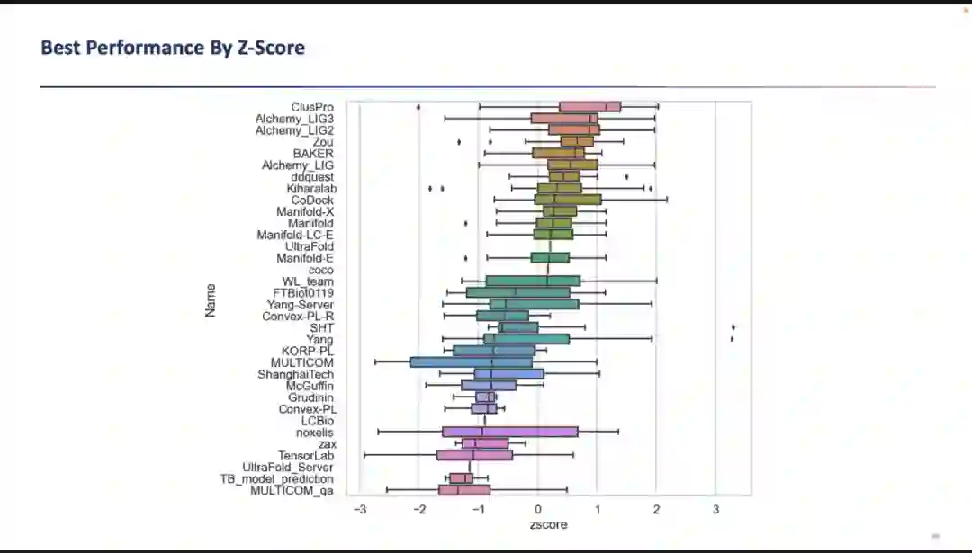 图6. CASP15蛋白质-小分子复合体预测排名(按照全部构象)