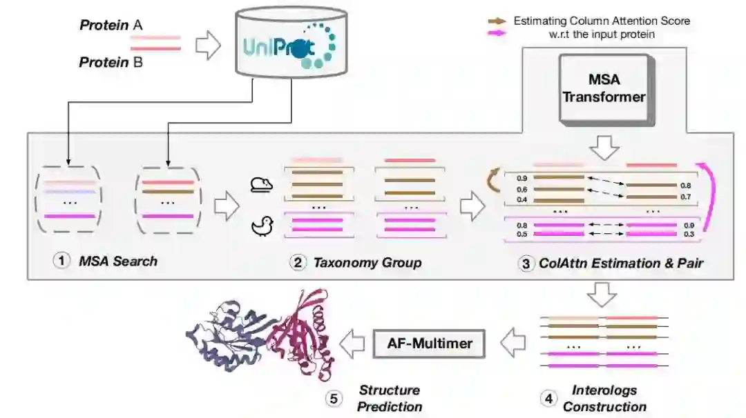 1 介绍 现在有许多深度学习模型在计算生物结构。AlphaFold-Multimer 就提升了蛋白质复合物结构的预测水平,但其准确性依然取决于多序列比对(MSA)结果。相对于 AlphaFold2,AlphaFold-Multimer 需要构建间相互作用 MSA,但如何构建依旧是一个问题。同时,蛋白质语言模型也在不同的工作中被广泛应用,它可以捕捉到序列中的约束和共进化信息。