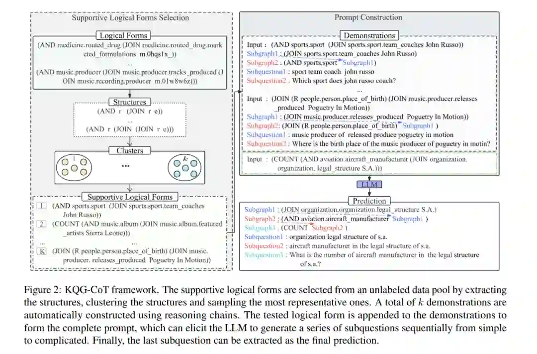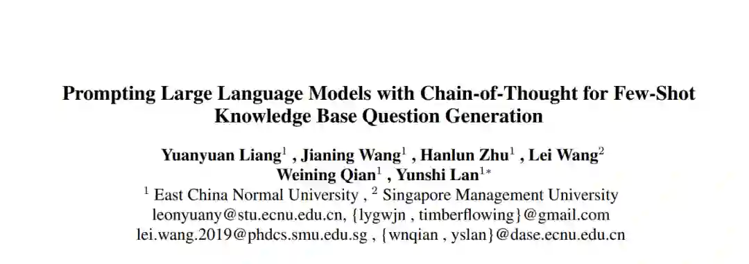 基于知识库的问题生成(KBQG)任务旨在将逻辑形式转换为自然语言问题。由于大规模问题标注的成本昂贵,迫切需要开发低资源场景下的KBQG方法。然而,现有方法严重依赖于标注数据进行微调,不适合少样本问题生成。大型语言模型(LLM)的出现在小样本任务中表现出了令人印象深刻的泛化能力。受思维链(CoT)提示的启发,该文将KBQG任务表述为一个推理问题,将一个完整问题的生成分解为一系列子问题的生成。所提出的提示方法KQG-CoT首先考虑逻辑形式的特征,从未标记的数据池中选择支持逻辑形式。然后,构建一个特定于任务的提示,以指导LLM基于所选逻辑形式生成复杂的问题。为了进一步确保提示质量,我们通过对逻辑形式的复杂性进行排序,将KQG-CoT扩展为KQG-CoT+。在三个公开的KBQG数据集上进行了广泛的实验。结果表明,我们的提示方法在评估数据集上始终优于其他提示基线。值得注意的是,我们的KQG-CoT+方法可以在BLEU-4、METEOR和ROUGE-L上分别超过PathQuestions数据集现有的少样本SoTA结果18.25、10.72和10.18个绝对点。