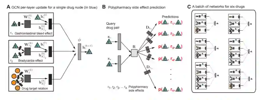 使用药物组合,称为多药治疗,是常见的治疗复杂疾病或共存条件的患者。然而,多药治疗的一个主要后果是给病人带来更高的副作用风险。多药副作用是由于药物与药物的相互作用而产生的,如果与另一种药物同时服用,其中一种药物的活性可能发生有利或不利的变化。药物相互作用的知识往往是有限的,因为这些复杂的关系是罕见的,通常不观察到相对较小的临床试验。因此,发现多药的副作用仍然是一个重要的挑战,对患者的死亡率和发病率有重大影响。