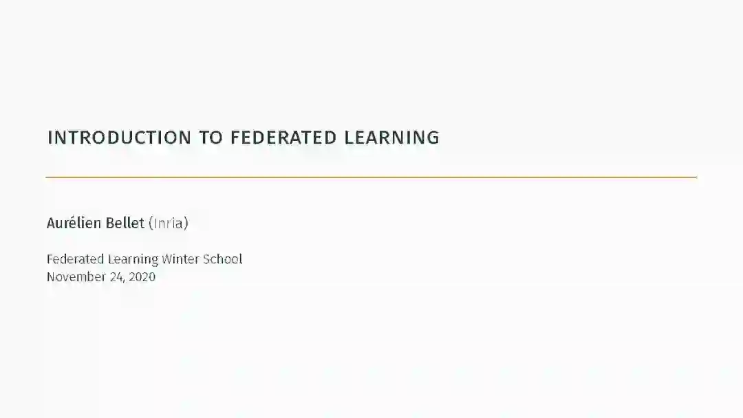 联邦学习(FL)是一种机器学习设置,许多客户(例如移动设备或整个组织)在保持数据分散的同时协同训练一个模型。FL体现了集中的数据收集和最小化的原则,并可以减轻许多系统的隐私风险和成本造成的传统,集中的机器学习和数据科学方法。这个演讲,Aurelien Bellet将介绍属于FL范畴的各种设置,回顾一些标准算法,并讨论最近的一些工作和开放问题。