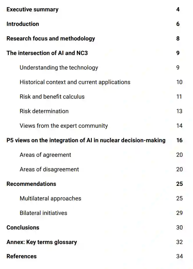 报告探讨了当今先进人工智能系统的固有风险,揭示了该技术不同分支的特点和风险。报告为通用风险评估框架奠定了基础,以分析考虑整合的模型,并为暂停将高风险人工智能系统整合到 NC3 奠定了规范和门槛基础。