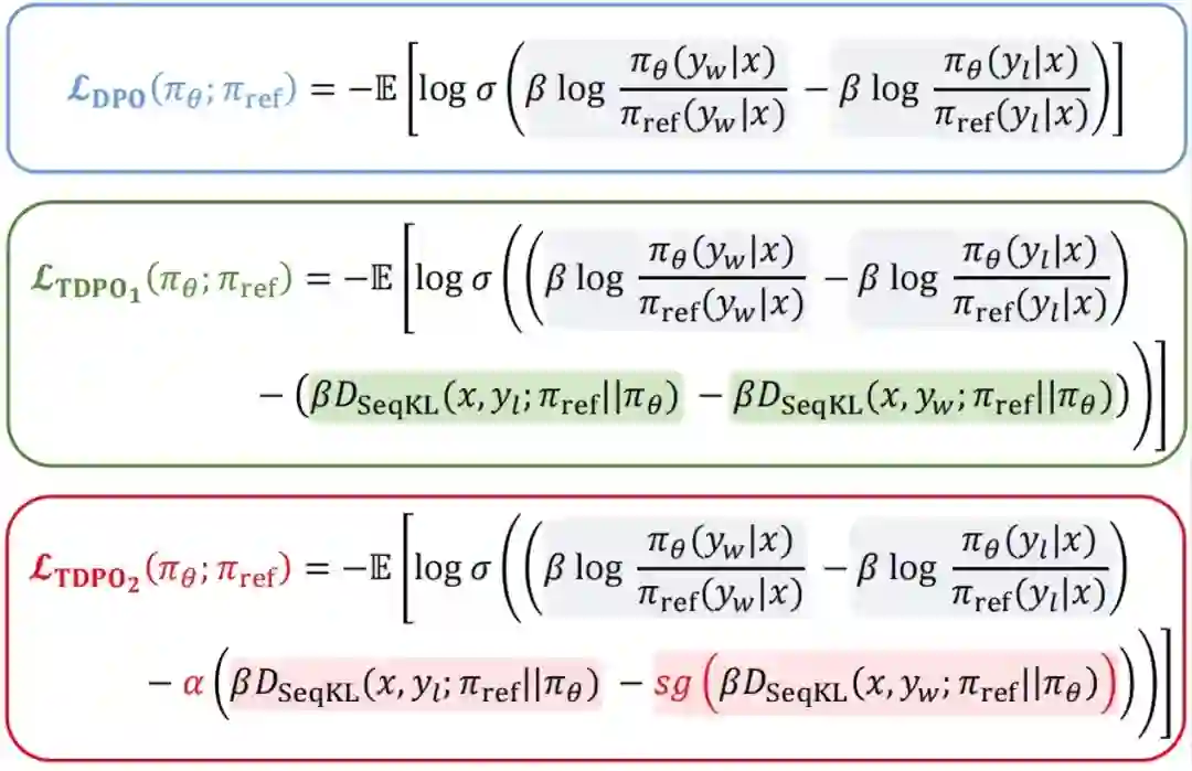 Token-level Direct Preference Optimization 论文作者:曾勇程,刘国庆,马纬彧,杨宁,张海峰,汪军 在人工智能领域的发展过程中,对大语言模型(LLM)的控制与指导始终是核心挑战之一,旨在确保这些模型既强大又安全地服务于人类社会。直接偏好优化方法(DPO)通过数学推理得到奖励函数与最优策略之间的直接映射,消除了奖励模型的训练过程,直接在偏好数据上优化策略模型,实现了从「反馈到策略」的直观飞跃。然而,DPO主要关注在逆KL散度约束下的策略优化。由于逆KL散度的mode-seeking特性,DPO在提升对齐性能方面表现出色,但是这一特性也倾向于在生成过程中减少多样性,可能限制模型的能力。另一方面,尽管DPO从句子级的角度控制KL散度,模型的生成过程本质上是逐个token进行的。从句子级控制KL散度直观上表明DPO在细粒度控制上存在限制,对KL散度的调节能力较弱,可能是DPO训练过程中LLM的生成多样性迅速下降的关键因素之一。 为了应对模型生成多样性显著下降的问题,我们的方法TDPO从token-level的角度重新定义了整个对齐流程的目标函数,并通过将Bradley-Terry模型转换为优势函数的形式,使得整个对齐流程能最终从 Token-level层面进行分析和优化。相比于 DPO而言,TDPO的主要贡献如下: * Token-level的建模方式:TDPO从Token-level的角度对问题进行了建模,对RLHF进行了更精细的分析; * 细粒度KL散度约束:在每个token处从理论上引入了前向 KL散度约束,使方法能够更好地约束模型优化; * 性能优势明显:相比于DPO而言,TDPO能够实现更好的对齐性能和生成多样性的帕累托前沿。