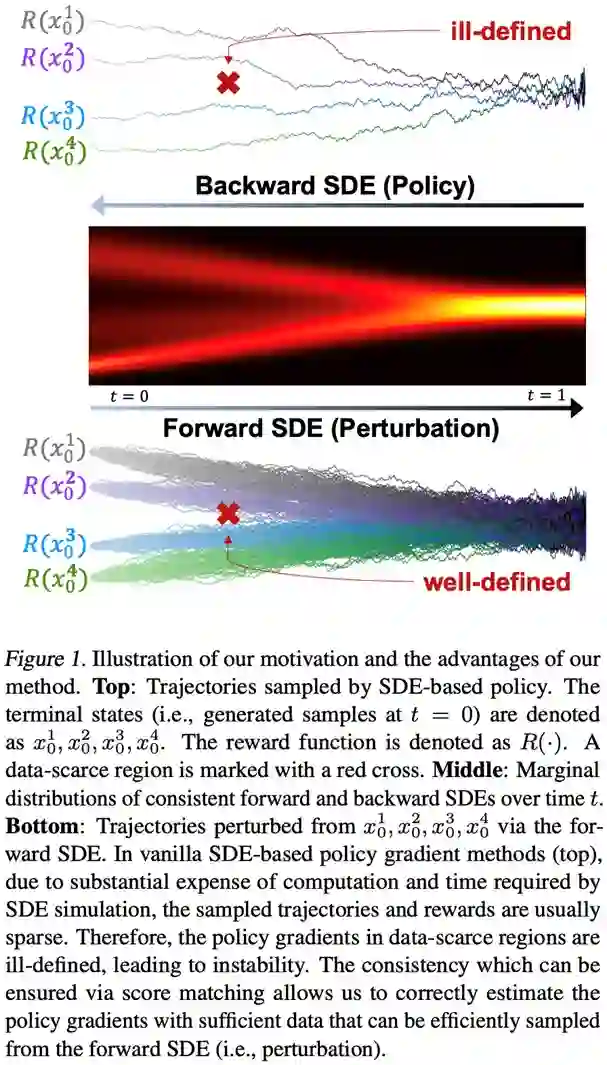 论文作者:周相鑫,王亮,周钇驰 为了生成具有目标性质的样本,本研究专注于优化参数化的随机微分方程(SDEs)的深度神经网络生成模型,这是具有高表达性的先进生成模型。策略梯度是强化学习中的领先算法。然而,当将策略梯度应用于SDEs时,由于策略梯度是基于有限的轨迹集估计的,它可能是不明确的,并且在数据稀疏区域的策略行为可能是不受控制的。这一挑战妨碍了策略梯度的稳定性,并对样本复杂性产生了负面影响。 为了解决这些问题,本研究提出将SDE约束为与其相关的扰动过程一致。由于扰动过程覆盖了整个空间并且易于采样,本研究可以缓解上述问题。研究框架提供了一种通用方法,允许灵活选择策略梯度方法,以有效且高效地训练SDEs。本研究在基于结构的药物设计任务上评估了算法,并优化了生成的配体分子的结合亲和力。本研究提出的方法在CrossDocked2020数据集上实现了最佳Vina得分。 论文链接:https://arxiv.org/abs/2403.04154