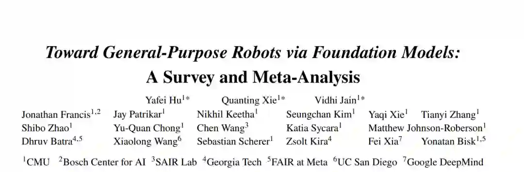 在本文中,我们调查了基础模型在机器人技术中的应用,并旨在理解基础模型如何帮助缓解核心机器人技术挑战。我们使用“机器人技术基础模型”一词来包括两个不同的方面:(1)将现有的(主要是)视觉和语言模型应用于机器人技术,主要通过零样本学习和情境学习;以及(2)使用机器人生成的数据开发和利用专门针对机器人任务的机器人基础模型。我们总结了机器人技术基础模型论文的方法论,并对我们调查的论文的实验结果进行了元分析。
