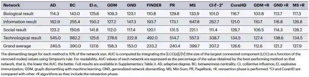表2 不同算法拆解真实世界的网络的效果对比基于机器学习的算法相关学习资源推荐:GDM:如何以最小代价破坏系统结构?一套基于机器学习的方法FINDER:论文一作解读,利用强化学习寻找复杂系统的关键节点人工智能前沿:组合优化问题的机器学习求解