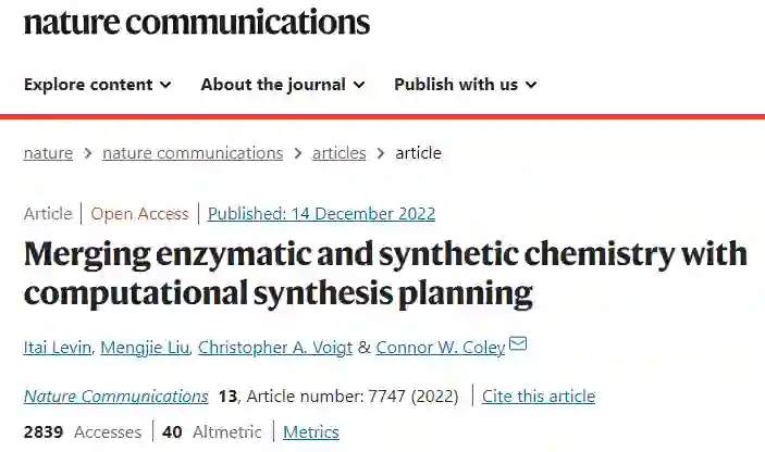 作者 | 邹佳俊 审稿 | 杨崇周 这次为大家报道的是Nature Communiations 上一篇题为”Merging enzymatic and synthetic chemistry with computational synthesis planning” 的文章,来自美国马萨诸塞州麻省理工学院的Connor W. Coley团队。