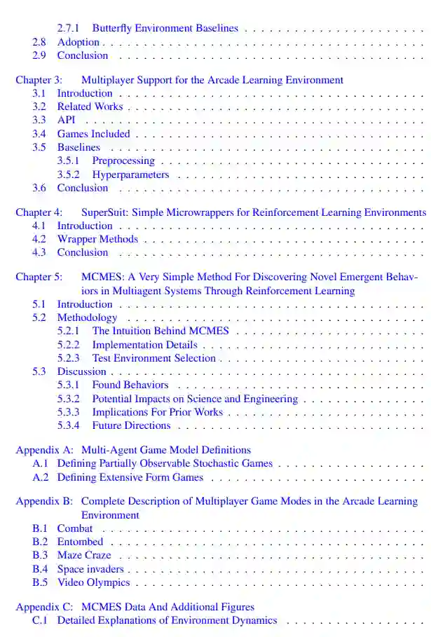 基于上述工具,本文还利用多智能体强化学习开发了一种自然科学研究新方法。“涌现行为”指智能体群体的协调行为(如人行道行人、鸟群编队、交通车流或股市交易者),代表诸多科学领域中普遍未解的重要现象。本研究首次提出通过多智能体强化学习(MARL)系统搜索多智能体系统中所有可能良性(“成熟”)涌现行为的数学形式化框架,并构建基于深度强化学习的初级实现,可应用于任意环境。实验表明,在12个多智能体系统中,该方法可发现超百种涌现行为,其中多数为环境设计者此前未知。此类方法有望解答各类开放科学问题,例如:“该系统可能存在哪些行为?”、“何种系统条件促成此类涌现行为?”或“如何调整系统以抑制特定涌现行为?”
