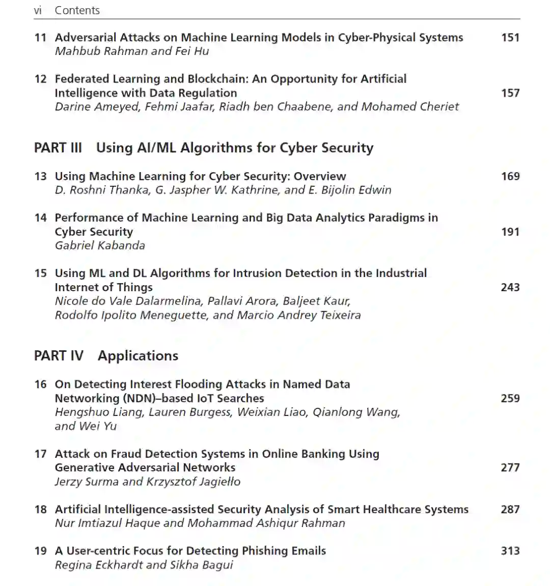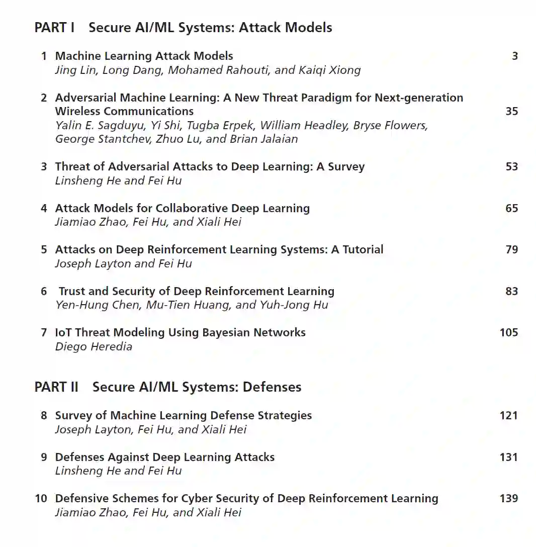 今天,人工智能(AI)和机器学习/深度学习(ML/DL)已经成为信息技术中最热门的领域。在当今社会,许多智能设备依赖于AI/ML/DL算法/工具进行智能操作。尽管AI/ML/DL算法和工具已经在许多互联网应用程序和电子设备中使用,但它们也容易受到各种攻击和威胁。AI参数可能被内部攻击者扭曲;DL输入样本可能被对手污染;在许多其他攻击和威胁中,ML模型可能会因改变分类边界而被误导。这样的攻击会使人工智能产品变得危险。虽然本讨论的重点是基于AI/ML/DL的系统中的安全问题(即保护智能系统本身),但AI/ML/DL模型和算法实际上也可以用于网络安全(即使用AI来实现安全)。由于AI/ML/DL安全是一个新兴的领域,许多研究人员和行业专业人士还不能对该领域进行详细、全面的了解。本书旨在提供各种应用程序中相关安全问题的挑战和解决方案的完整图景。它解释了高级人工智能工具中如何发生不同的攻击,以及克服这些攻击的挑战。然后,书中描述了许多实现人工智能安全和隐私的有希望的解决方案。这本书的特点有七个方面: