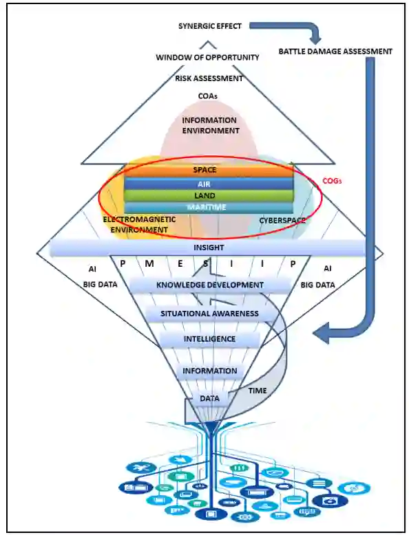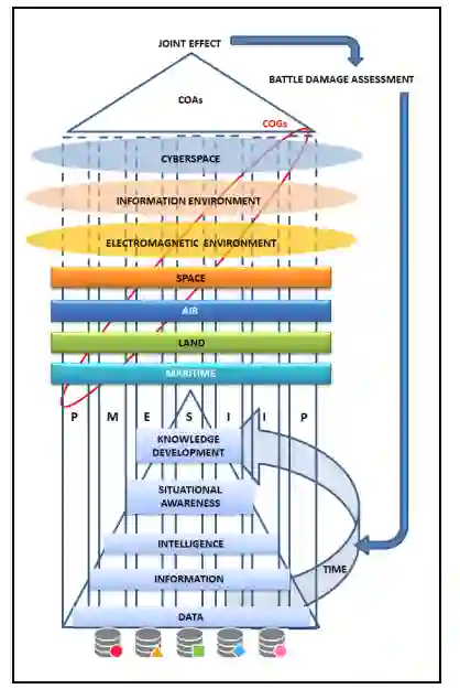 本文探讨了作战环境联合情报准备 (JIPOE) 作为支持联合作战规划、执行和评估的主要工具的作用和意义,从而有助于多域作战 (MDO) 的同步和协调。在这方面,基于政治、军事、经济、信息、基础设施-物理、时间(PMESII-PT)方法,不可能将对当代作战环境(OE)的分析局限于物理领域及其与非物理领域的关系。相反,作者们相信,确定一种合适的方法来关注在非物理领域单独或联合进行的活动影响,它们在PMESII-PT所有领域的相互融合和实际操作领域的相关性,将大大有助于友军识别和评估对手的重心(COG)、关键弱点、意图和行动路线(COAs)的能力,包括各自的指标。JIPOE将为联合部队指挥官(JFC)提供OE的整体视图,将与战术层面密切合作、共享和开发,通过结合不同领域的能力,应该能够压倒对手的部队。这种集中控制和分散执行的方法将有助于在作战和战术层面之间产生协同效应。