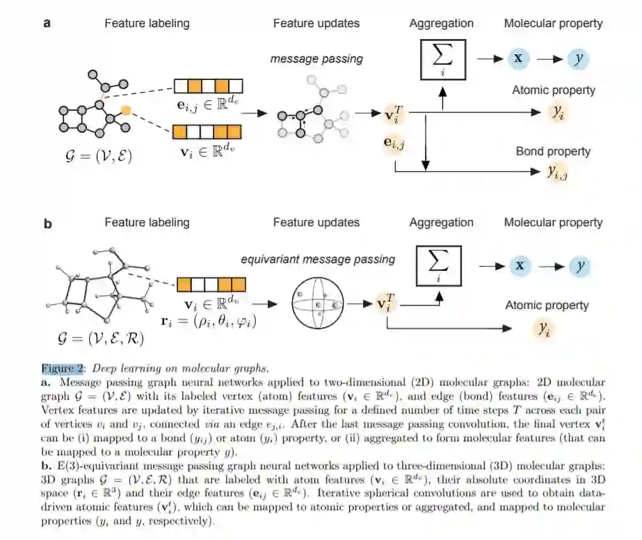 本文的目的是 :(1) 对GDL在分子系统中的应用进行结构化和协调的综述; (2)概述该领域的主要研究方向; (3) 预测GDL的未来影响。重点介绍了三个应用领域,即药物发现、量子化学和计算机辅助合成规划(CASP),特别关注了GDL方法学习到的数据驱动分子特征。所选术语的词汇表见框1。