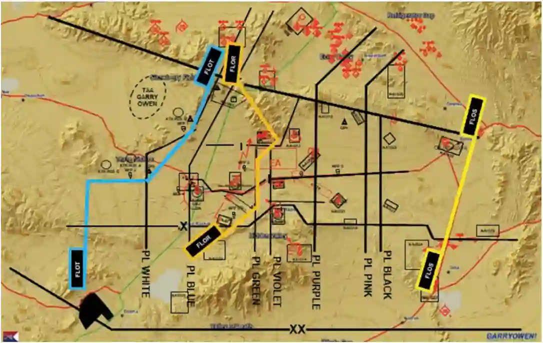 图 3. 本文场景中提到的关键地点。(图片由第 1 骑兵师 1-7 骑兵团的 Sid McMath 中校绘制)