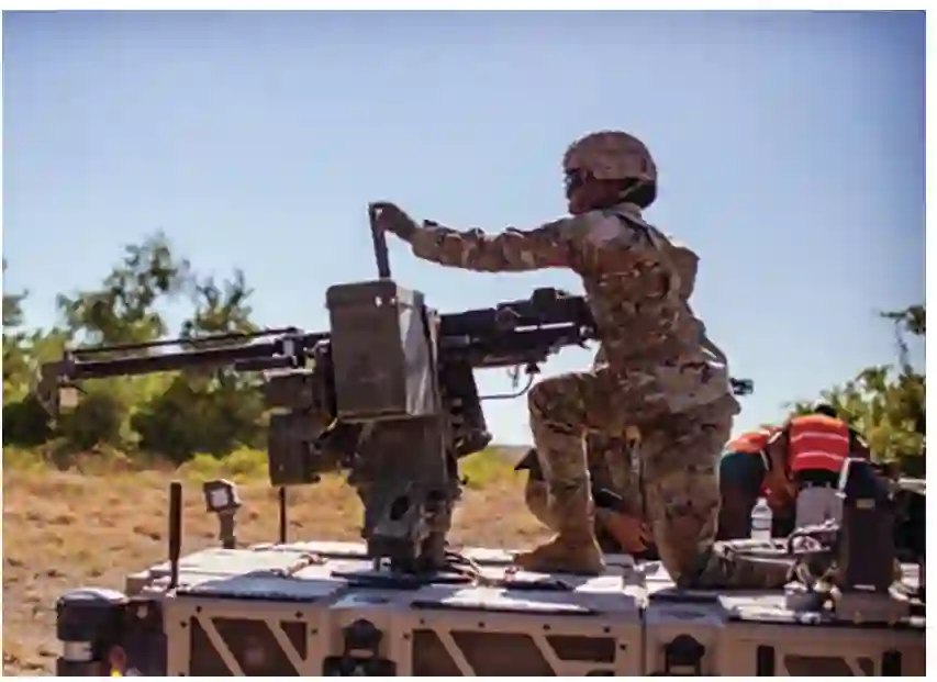 图 4. 一名士兵在训练中操作 RCV 改型上的 .50 口径武器。(第 1 骑兵师公共事务办公室 Jennifer Bocanegra 中校拍摄)。