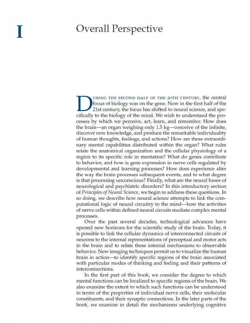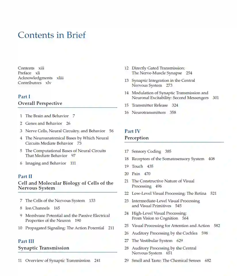 这个新版本的特点:对神经,大脑和思维如何运作的覆盖无与伦比新章节涉及:-介导行为的神经回路的计算基础-脑机接口-决策和意识关于神经系统失调的神经科学原理的新章节扩展了人类记忆的不同形式关于中风,帕金森氏症和多发性硬化症的高度详细的章节2200张图像,包括300张新的彩色插图、图表、放射学研究和PET扫描神经科学原理,第6版受益于一个有凝聚力的组织,以大脑,神经系统,基因和行为之间的相互关系的深刻概述开始。**正文分为9个部分:**第一部分:整体视角提供了神经科学广泛主题的概述,包括神经系统的基本解剖组织和神经系统功能和行为的遗传基础。第二部分:神经系统细胞的细胞和分子生物学检查神经细胞的基本属性,包括产生和传导的传播信号。第三部分:突触传递集中在电生理和分子机制的突触传递与章节神经元兴奋性,神经递质,和递质释放。第四部分:知觉讨论感觉知觉的各个方面,包括如何从主要感觉器官的信息传递到中枢神经系统和处理。第五部分:运动考虑了运动背后的神经机制,并检查了一种新的治疗方法,解决了基底神经节如何调节运动动作的选择和实例化强化学习。第六部分:情绪、动机和内稳态的生物学研究了皮层下区域调节内稳态控制机制、情绪和动机的神经机制。第七部分:神经系统的发展和行为的出现,从早期胚胎分化到突触的形成和消除。第八部分:学习、记忆、语言和认知扩展了前面的部分,研究了内隐和外显记忆存储的细胞机制,以及决策和意识。第九部分:探讨神经系统疾病和障碍的神经机制,包括自闭症谱系障碍、癫痫、精神分裂症和焦虑。和以前的版本一样,第六版《神经科学原理》的目标是让读者深入了解基因、分子、神经元以及它们形成的回路是如何引起行为的。随着神经科学研究的指数级增长超过40年,这本书的第一版,一个越来越大的挑战是提供一个全面的概述的领域,同时保持真实的第一版的最初目标,这是提升传授基本原理超过详细的百科全书式的知识。在过去的75年里,脑科学最伟大的成就之一就是阐明了神经细胞的细胞生物学和电生理功能,从霍奇金(Hodgkin)、赫胥黎(Huxley)和卡茨(Katz)对动作电位和突触传递的初步研究,到我们对这些基本过程的遗传和分子生物物理基础的现代理解。本书的前三部分描述了这些非凡的成就。