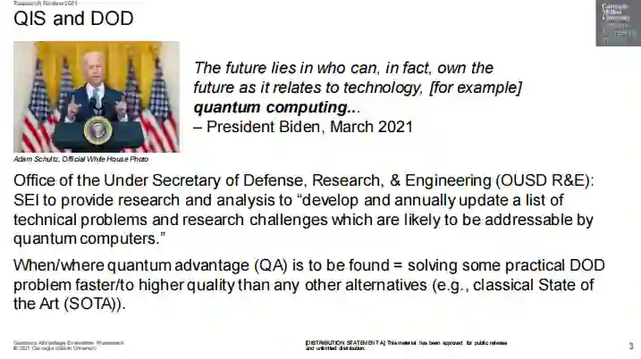 目标:我们的目标是量子优势(QA);我们希望比其他任何替代方案(如经典的SOTA)更快、更高质量地解决美国防部的实际问题。