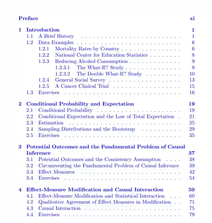 本书以简要的历史和概率论和统计基本要素的回顾开始,一个独特的特点是它的焦点是真实和模拟的数据集,所有二进制变量,以减少复杂的方法到它们的基本原理。微积分不是必需的,但是愿意处理数学符号、复杂的概念和复杂的逻辑论证是必不可少的。虽然包含了许多真实的数据例子,但本书也以双重假设研究为特色,它基于已知因果机制的模拟数据,相信在已知方法成功或失败的情况下,这些方法是最好的理解。数据集,R代码和奇数练习的解决方案可在该书的网站www.routledge.com/9780367705053上获得。