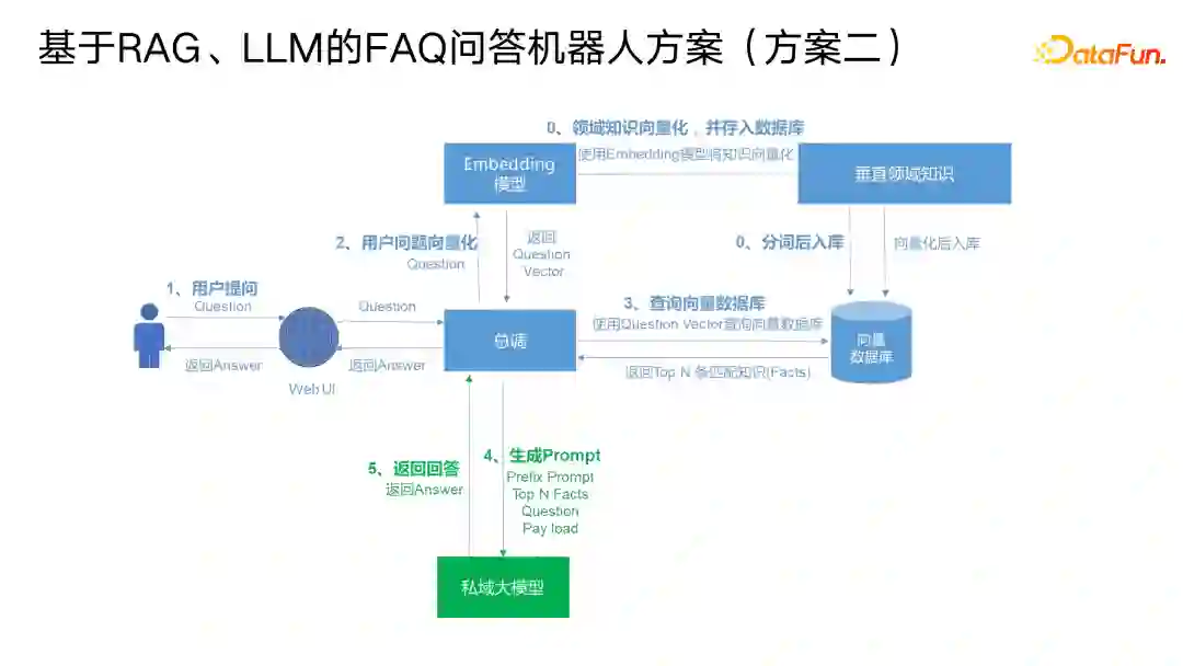 ***A1:目前,RAG(Retriever-Augmented Generation)是大家讨论的热点。使用 RAG 的通常做法是:首先将知识向量化存储到向量数据库中,然后查询与之相似的问题,并让大模型生成答案。但是,如果仅仅按照这种方式操作,很难保证生成的答案与知识库中的信息完全一致,即使考虑到大模型的规模,也存在一定的困难。我们之所以能实现 94% 的准确率,与知识库内容完全匹配,是因为我们采取了特定的策略。在提问时,我们根据问题的相似性选择最相似的几个问题,然后在生成答案时指导大模型选择与哪个问题最相似,而不是直接将问题和答案一起提供给大模型让其理解后再生成答案。我们是让大模型直接返回最相似问题的编号。通过这种方式,我们可以通过编号直接获取对应的准确答案,从而保证了答案的相似性和准确性。