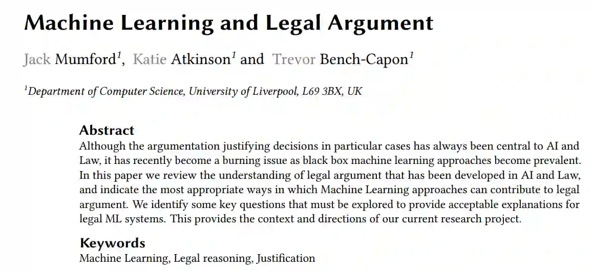 尽管在特定案例中为决策辩护的论据一直是人工智能和法律的核心,但随着黑盒机器学习方法的流行,它最近已成为一个紧迫的问题。在本文中,我们回顾了人工智能和法律领域对法律论证的理解,并指出了机器学习方法可以为法律论证做出贡献的最合适的方式。我们确定了一些必须探索的关键问题,以便为合法的 ML 系统提供可接受的解释。这提供了我们当前研究项目的背景和方向。