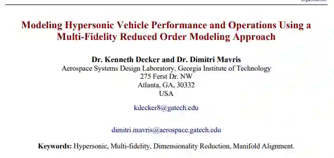 本研究提出了一种方法,用于训练和验证数据驱动的、参数化的、多保真的减序模型,能够预测具有不连续特征的高维空气热流场。在设计新概念时,设计者往往缺乏进行传统概念设计所需的历史数据,因此必须依赖基于物理学的模型和模拟工具的数据。然而,现实的计算预算往往限制了可用于训练预测模型的高保真样本的数量。在这些情况下,多保真方法已被确定为提高模型准确性的关键推动力,因为它们能够利用来自高保真和低保真来源的训练数据,这使设计者能够使用大量廉价的低保真样本来补充训练数据并提高采样分辨率。这项研究制定了一种方法,利用Procrustes流形排列,用线性和非线性投影方法进行多保真模型的减序。然后将这些方法应用于陆军海军的Finner射弹,以在学科和系统层面上描述这种方法。据观察,所提出的模型阶次还原能够准确地捕捉表面分布。当部署在一个耦合轨迹模型中时,减序模型能够在模拟中取代全序CFD,同时与全序解决方案保持密切一致。所提出的方法也优于传统的空气动力学数据库查询表,同时保持可控的计算成本。