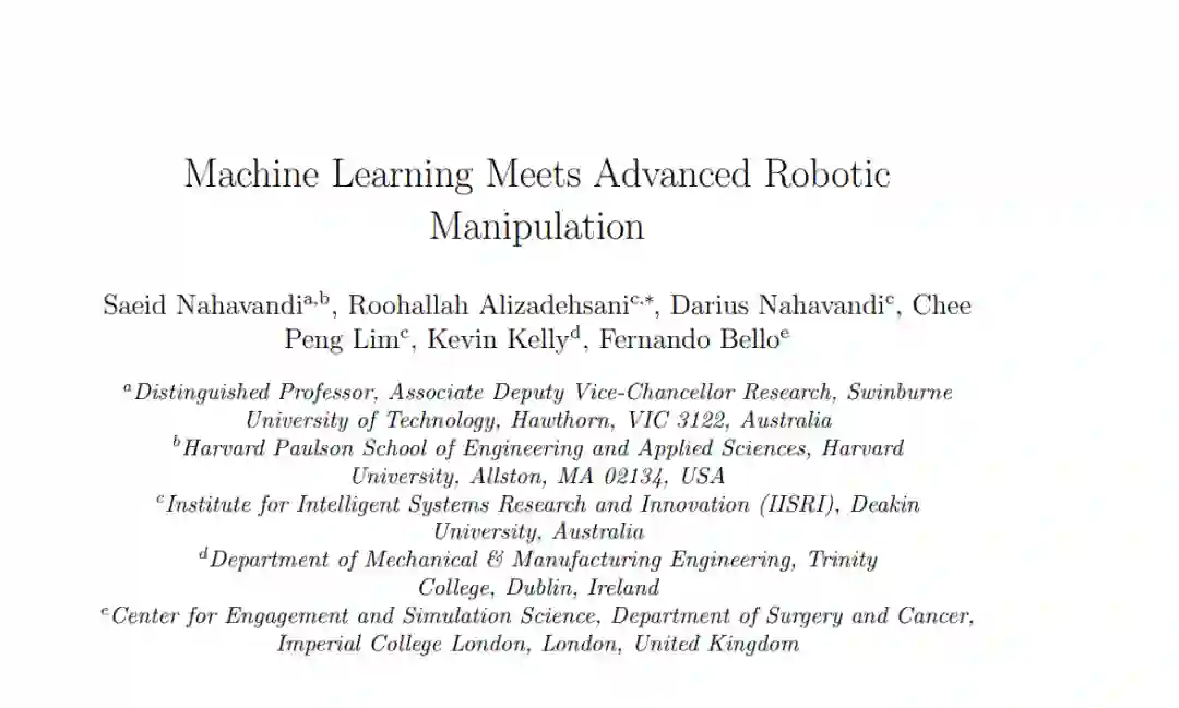 我们正生活在一个技术飞速发展的特殊时代,在这个时代,机器人操控器在实现高效可靠的自动化方面发挥着重要作用。虽然传统的手工编码控制器已经存在了很长时间,但机器人日益增长的复杂性要求更好、更易于使用的控制器。机器学习(ML)可在一定程度上用于抽象开发手工编码控制器的复杂性。这是通过利用领域知识,以专家演示的形式,和/或使用强化学习(RL)通过与机器人工作空间的交互来学习控制器来实现的。然而,基于ML开发可靠的控制器仍需进一步研究。深度学习(DL)基础控制器对抗性攻击的稳健性,加强机器人周围的人类安全,以及实现成本效益的训练,只是未来可以追求的一些因素。