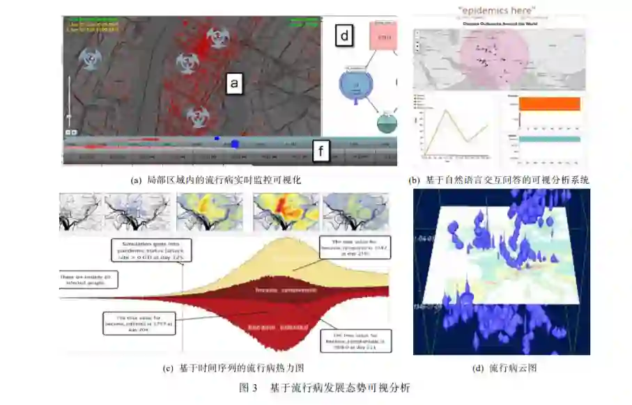 流行病数据的多层面可视分析,可以加快流行病数据分析任务的交互式探索效率和加深对潜在模式的深 刻理解. 本文对流行病数据可视分析的相关工作展开综述,并主要通过四个方面进行总结和归纳:(1)流行病数 据的时空可视分析,帮助用户发现和理解流行病数据在时间、空间以及时空维度中潜在的流行病特征和传播规律 等;(2)流行病数据中涉及非结构化/半结构化文本的语义可视分析,辅助用户快速了解长、短文本内容中的流行 病内容态势、情感走向等;(3)流行病传播模型的可视分析,增强用户对流行病传播过程中的预测、仿真、监测 等任务的交互式理解;(4)流行病数据的静态信息图,直观反映流行病信息的上下文内容和提高公众的理解效率. 在上述基础上,本文阐述了流行病数据可视分析在数据存储和获取,地图可视化形式多元扩展,流行病模拟传播 分析和多学科交融的综合可视分析存在的问题和挑战.