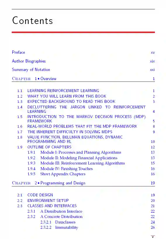强化学习是一种强大的技术,用于解决各种复杂的行业问题,涉及不确定性下的顺序最优决策。它在自动驾驶汽车、机器人和战略游戏等备受瞩目的问题上的渗透,表明未来强化学习算法的决策能力将远远优于人类。但当涉及到这一领域的教育时,人们似乎不愿意直接投入其中,因为强化学习似乎已经获得了神秘和具有技术挑战性的名声。这本书通过强调基础数学,用设计良好的Python代码实现模型和算法,以及对几个可以用强化学习解决的金融交易问题的稳健覆盖,努力传递对该主题的清晰和深刻的理解。这本书是在这些主题的教育学上经过多年的迭代实验而创建的,同时被教授给大学生以及行业从业者。特性