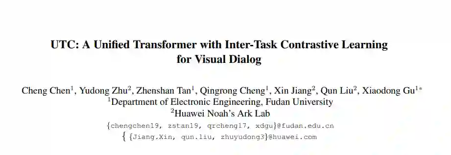视觉对话旨在回答基于对话历史和图像内容的多轮互动问题。现有方法要么单独考虑答案排序和生成,要么仅通过两个单独的模型微弱地捕捉两个任务之间的关系。在单一模型中共同学习排序和生成答案的通用框架的研究很少。在本文中,我们提出了一个基于对比学习的框架UTC,以统一和促进识别任务和生成任务在视觉对话中使用单一的模型。具体来说,考虑到之前学习范式的内在局限性,我们设计了两种任务间对比损失,即情境对比损失和答案对比损失,使区分性任务和生成性任务相辅相成。这两种互补的对比损失利用对话语境和目标答案作为锚点,从不同的角度提供表征学习信号。我们在VisDial v1.0数据集上评估我们提出的UTC,在那里,我们的方法在鉴别和生成任务上优于最先进的技术,并在Recall@1上超过2个绝对点。