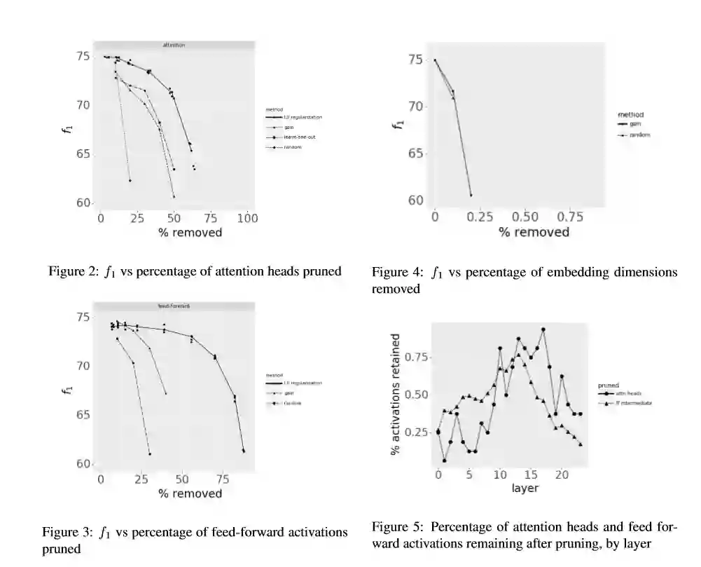 论文摘要: 我们研究了通过从基本的BERT模型中剪除参数来压缩基于BERT的问答系统。我们从为2.0小队训练的模型开始,引入允许变压器的选定部分被单独消除的门。具体来说,我们研究:(1)减少每个变压器中的注意头数目,(2)减少每个变压器的前向子层的中间宽度,以及(3)减少嵌入尺寸。我们比较了几种确定这些阈值的方法。我们发现剪枝注意头和前馈层的结合几乎使解码速度加倍,只有1.5f点的精度损失。