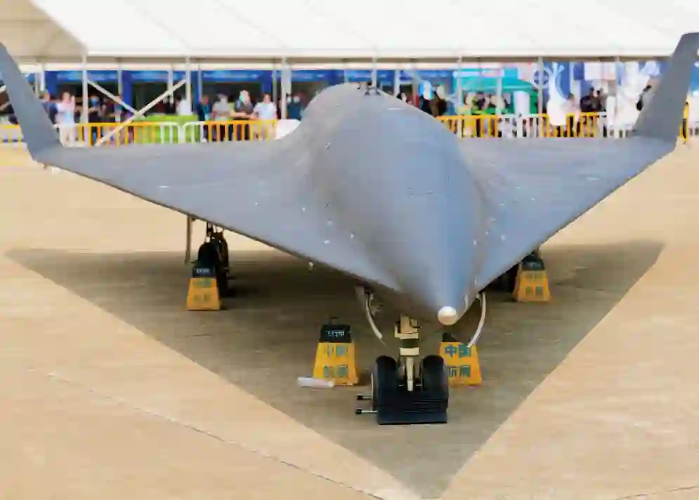 图:中国 WZ-8 高超音速侦察无人机于 2021 年 9 月 28 日在中国广东省珠海市举行的第十三届中国国际航空航天展览会(Airshow China 2021)上展出。