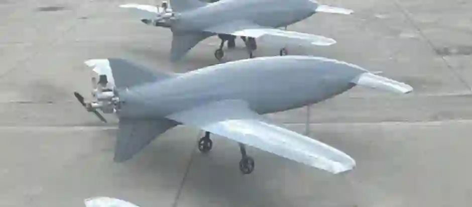 一种大型无人机,采用 “巡飞弹药 ”外形。该无人机翼展 4 米,长 2.7 米,配备 14 千克弹头。更多详情不详。