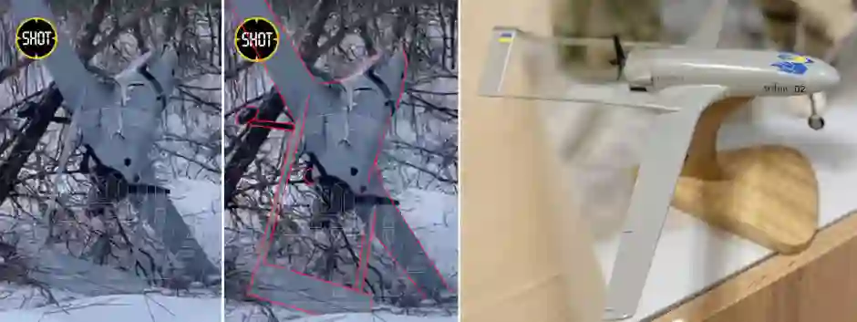 2024 年 1 月 29 日,一架乌克兰无人机坠落在距离乌克兰约 900 公里的俄罗斯雅罗斯拉夫尔炼油厂。虽然细节不多,但我们可以推断出它的整体布局。它有一个箱形机身和牵引式(前置式)螺旋桨,一个 V 形尾翼和一个斜面机翼(垂至翼尖)。俄罗斯的资料估计其长度为 1.5 米,翼展 3 米,弹头重 10 公斤。